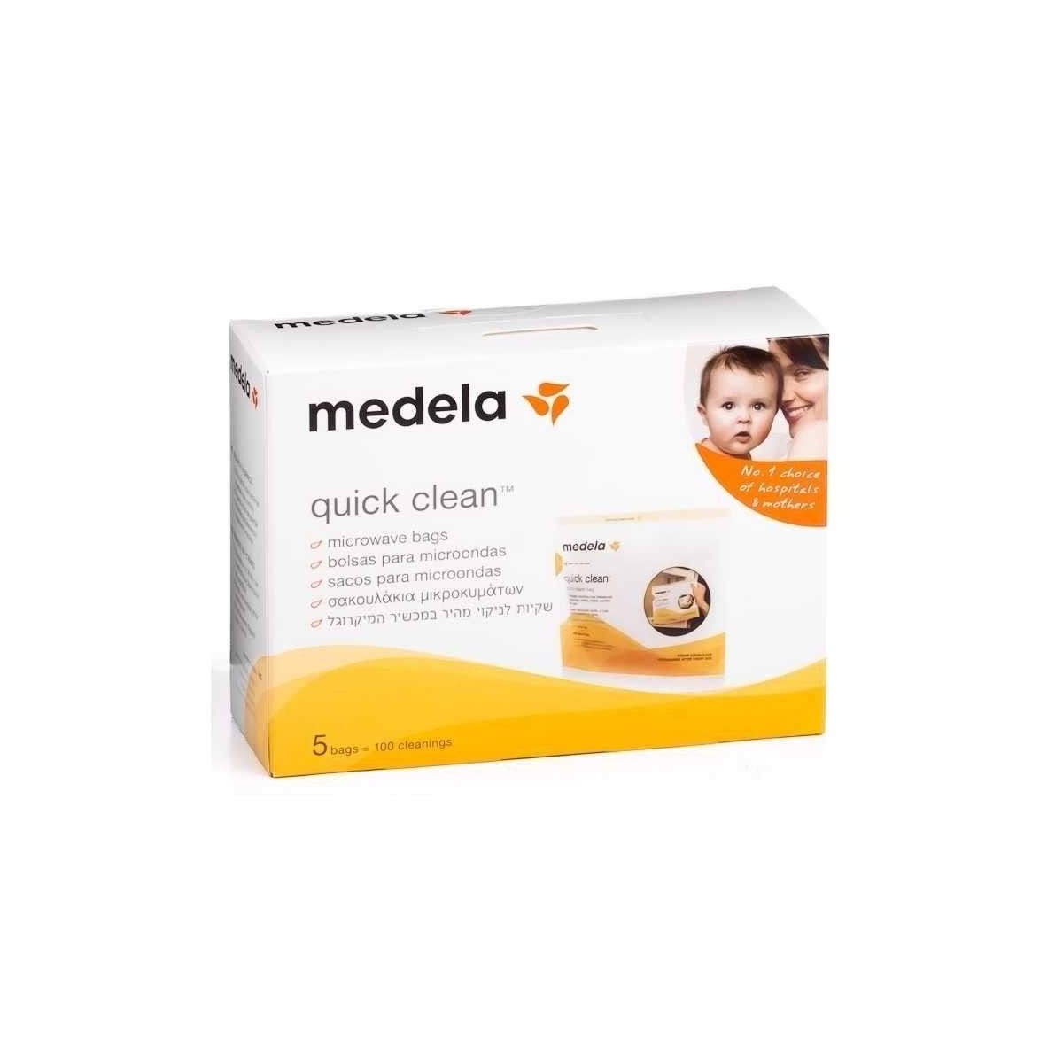 Limpieza con la Bolsa para Microondas Quick Clean Segura, rápida y práctica. Con la bolsa para microondas Quick Clean de Medela puede desinfectar los accesorios de lactancia, como biberones y tubos en menos de tres minutos (solo son necesarios tres pasos). Es más rápido y fácil que hirviéndolos. Desinfectar con vapor Durante el proceso de limpieza con la bolsa de microondas Quick Clean, se produce vapor húmedo en la bolsa y mata el 99,9 % de los gérmenes y bacterias más habituales. Por lo tanto, la desinfección con la bolsa de microondas Quick Clean se realiza sin productos químicos, es muy eficaz y respetuosa con el medio ambiente, pues cada bolsa se puede reutilizar hasta 20 veces. Pequeña y fácil de usar La bolsa para microondas Quick Clean se dobla y se guarda para que ocupe menos espa
