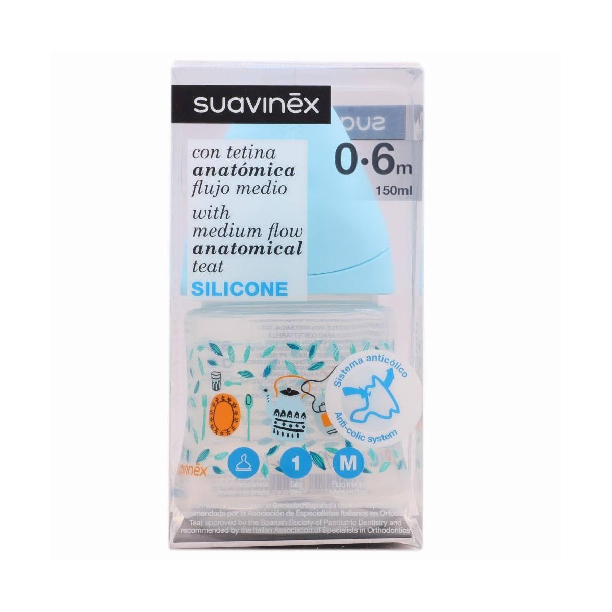 Con tetina anatómica flujo medio. La forma anatómica imita la forma del pezón materno durante la succión, siendo la talla 1 ideal para bebés de 0 a 6 meses, talla 2 ideal para bebés a partir de 6 meses.