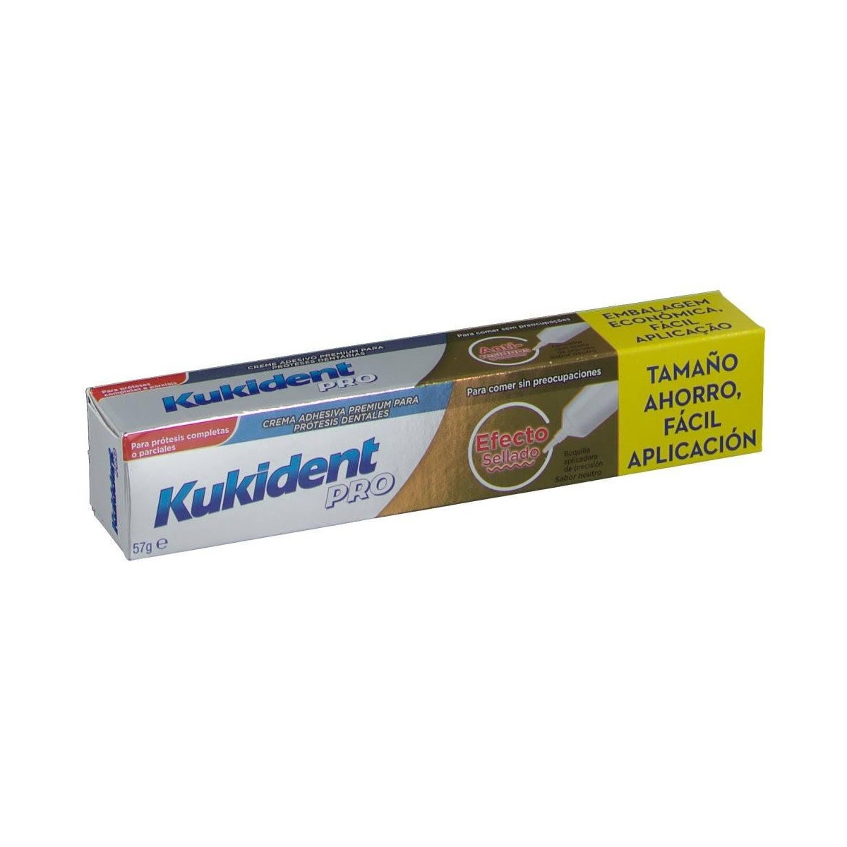 Crema adhesiva en pasta que estabiliza las dentaduras postizas en la boca, para fijación extra fuerte: - Sabor Clásico: con un suave sabor a menta. - Sabor Refescante: con un sabor a menta extra fresco. - Sabor Neutro: sin sabor. Efecto sellado: Crema dentadura postiza con efecto sellado anti-residuos. Protección extra contra partículas de comida.