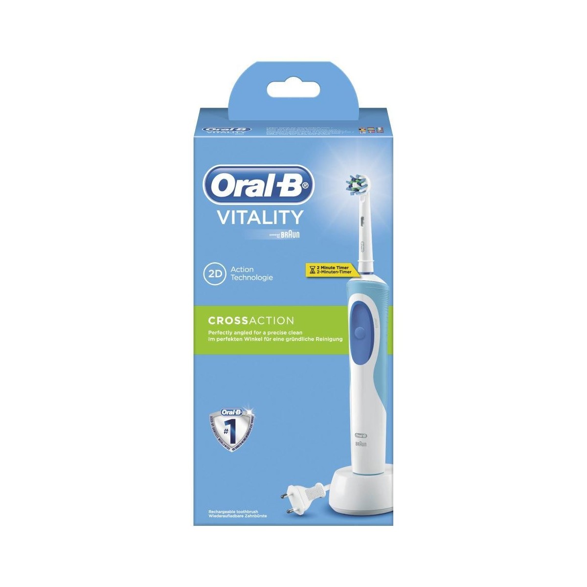 El cepillo de dientes Vitality Cross Action de Oral B está equipado con un sistema de 7600 oscilaciones por minuto para ofrecer una mayor limpieza y eliminación de la placa. Incluye 1 cabeza Oral B Cross Action.