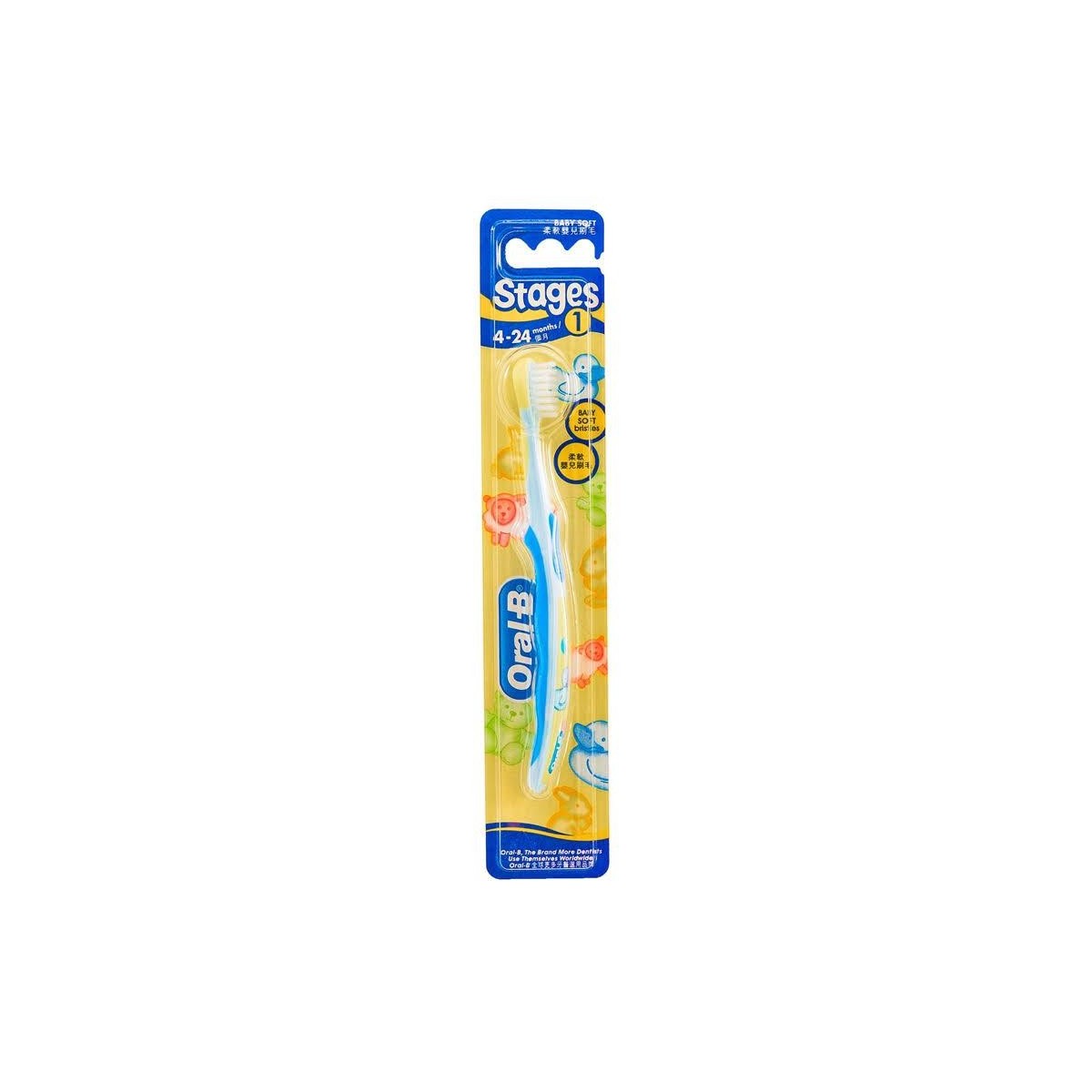 Estupendo cepillo dental infantil Stages1 ideal para bebés o niños de entre cuatro y veinticuatro meses de edad de la famosa marca orientada especialmente para higiene bucal Oral-B. Este cepillo de dientes está diseñado con filamentos Baby Soft muy delicados para cuidar, masajear y limpiar las encías primerizas sobretodo cuando le están creciendo los primeros dientes. Su cabezal es almohadillado para proteger al máximo la boca del niño y además el mango es adaptado y totalmente antideslizante.
