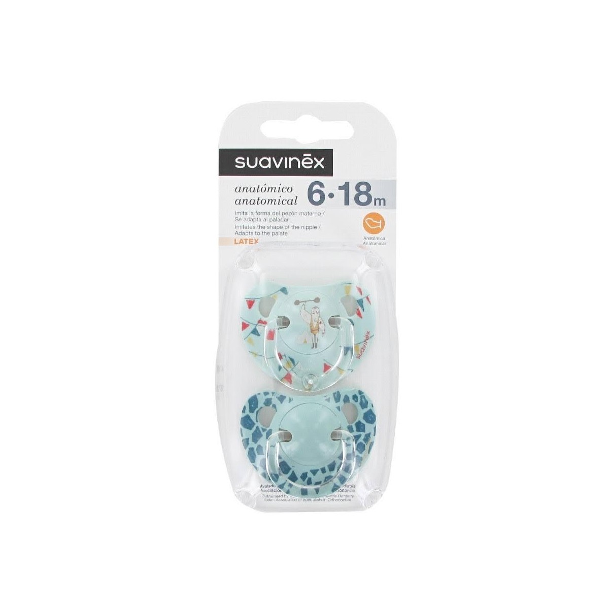 Chupete de látex anatómico para niños mayores de 6 meses.