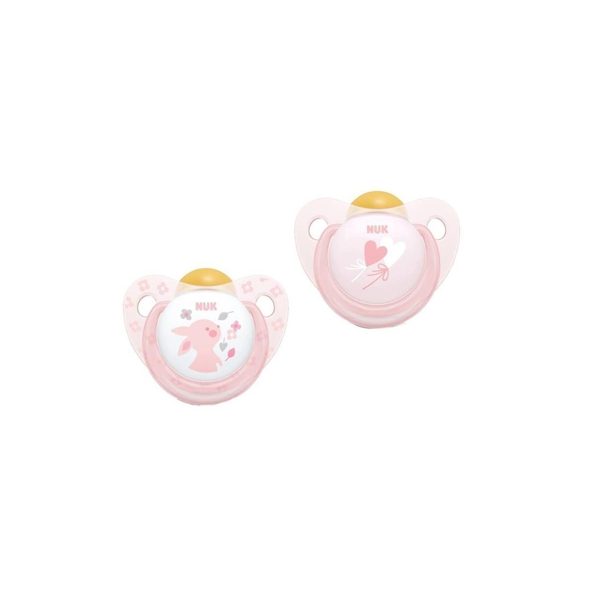 Nuk 2 Chupetes Rose 0-6 Meses Látex Nuk El chupete Rose de NUK tiene una tetina de látex con forma anatómica exclusiva que imita el pezón de la madre durante la lactancia y que se adapta perfectamente al paladar del bebé. 2 unidades. Beneficios: Con sistema de ventilación NUK AIR SYSTEM. El aire escapa a través de la tetina, lo que permite que ésta permanezca suave y moldeable y además previene la deformación de la mandíbula del bebé. Con escudo que cubre la boca con forma ergonómica.