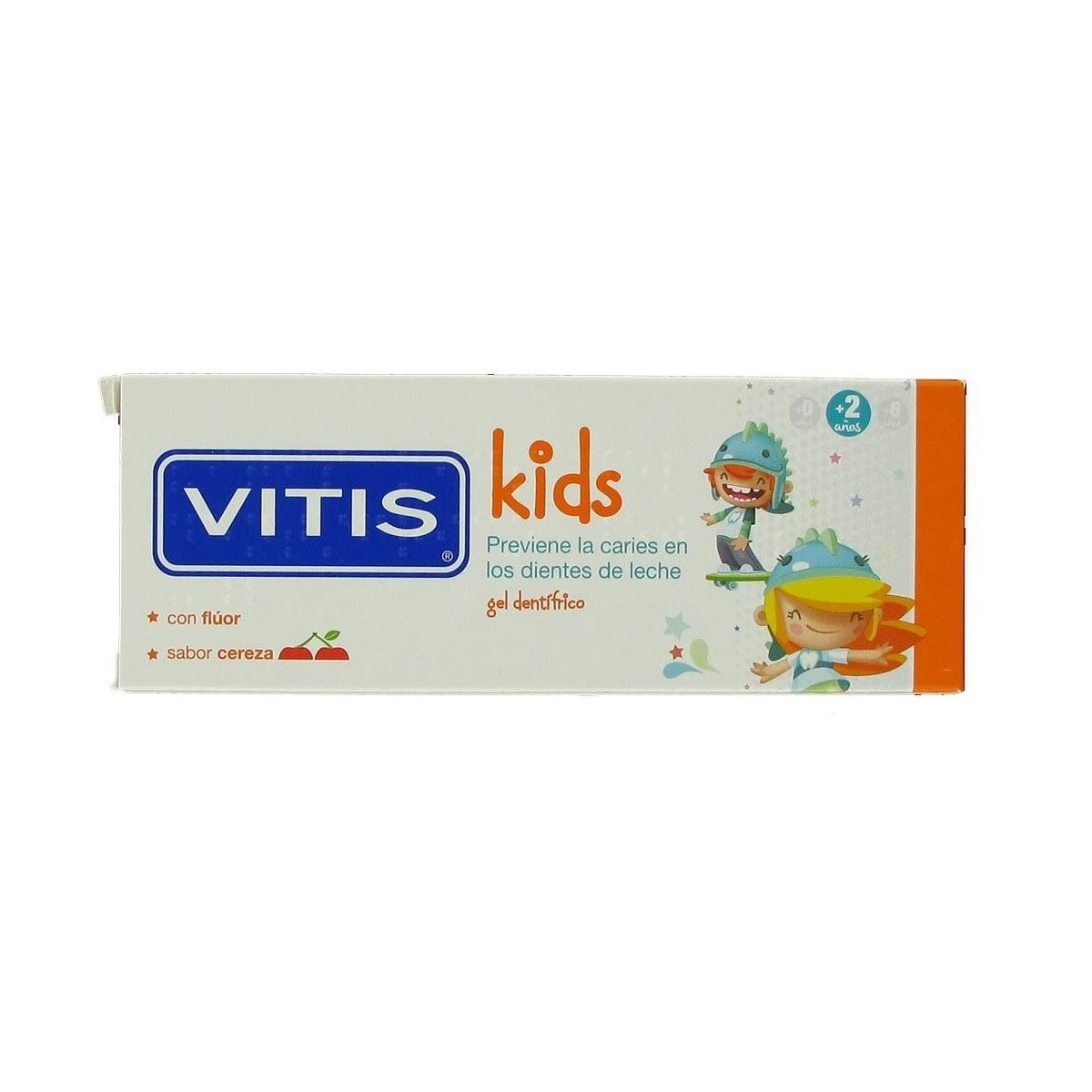 Dentaid Vitis Kids Gel Dentífrico 50ml Gel dentífrico destinado a prevenir las caries en los ms peques de la casa. Posee una formula a base de flor y cereza que previene la aparición de caries en los dientes de leche, contribuyendo as en el crecimiento de unos dientes de leche sanos y bien cuidados.