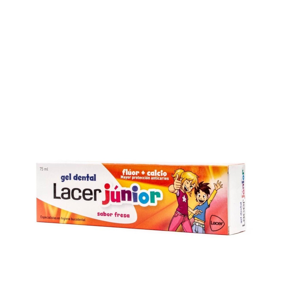 Gel dentífrico para el cuidado bucodental de niños a partir de 6 años. Lacer Junior refuerza el esmalte de los dientes y protege frente a la caries ya que combina Fluor y calcio No contiene conservantes así que se asegura una excelente tolerancia y un bajo índice de abrasividad. Modo de uso: Usar después de cada comida aplicando una pequeña cantidad sobre el cepillo y cepillar los dientes durante unos 2 minutos. Puede utilizarse de forma continuada como higiene habitual ya que no irrita las encías ni modifica el color de los dientes.