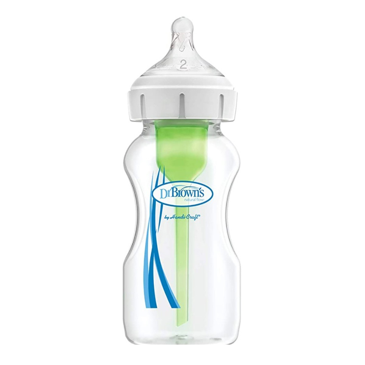 Biberón anticólico para reducir los cólicos, reflujos, eructos y gases. Sistema de ventilación interna: el aire entre en el cuello del biberón y pasa directamente al sistema de ventilación interna. El aire pasa a través del tubo de ventilacion hacia el fondo del biberón sin entrar en contacto con la leche. El sisteme de ventilación evita el contacto del aire con la lehce, la presión provocada por el vacío y el colapso de la tetina.