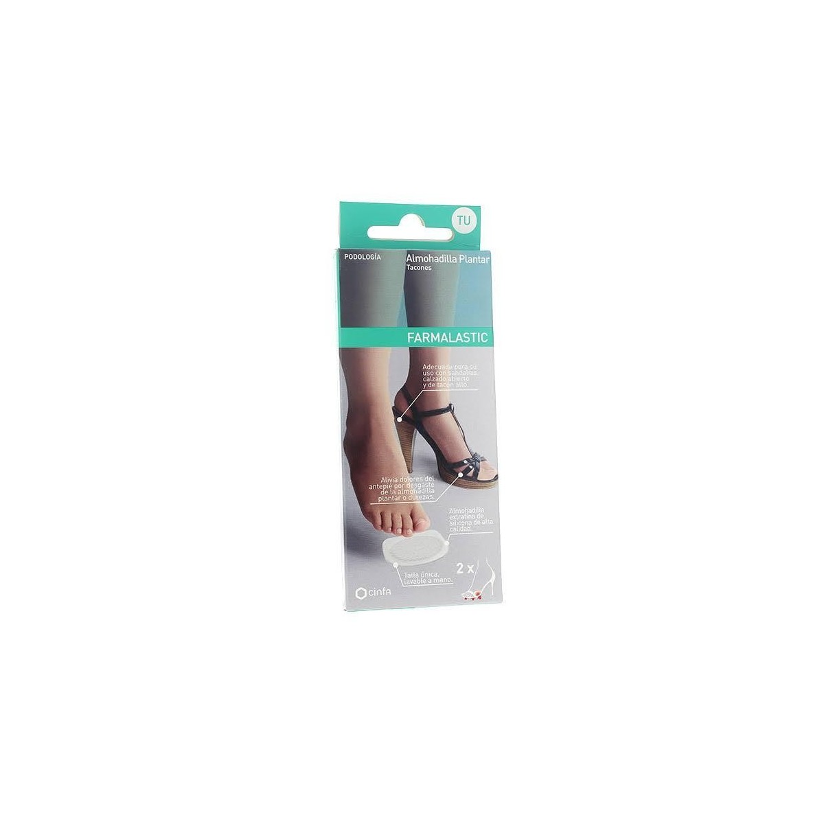 Debido a sus propiedades mecánicas, el módulo de gel de 1,5 mm. de grosor distribuye las presiones de forma similar a la almohadilla plantar natural, aliviando el dolor habitual cuando se llevan zapatos de tacón altos.