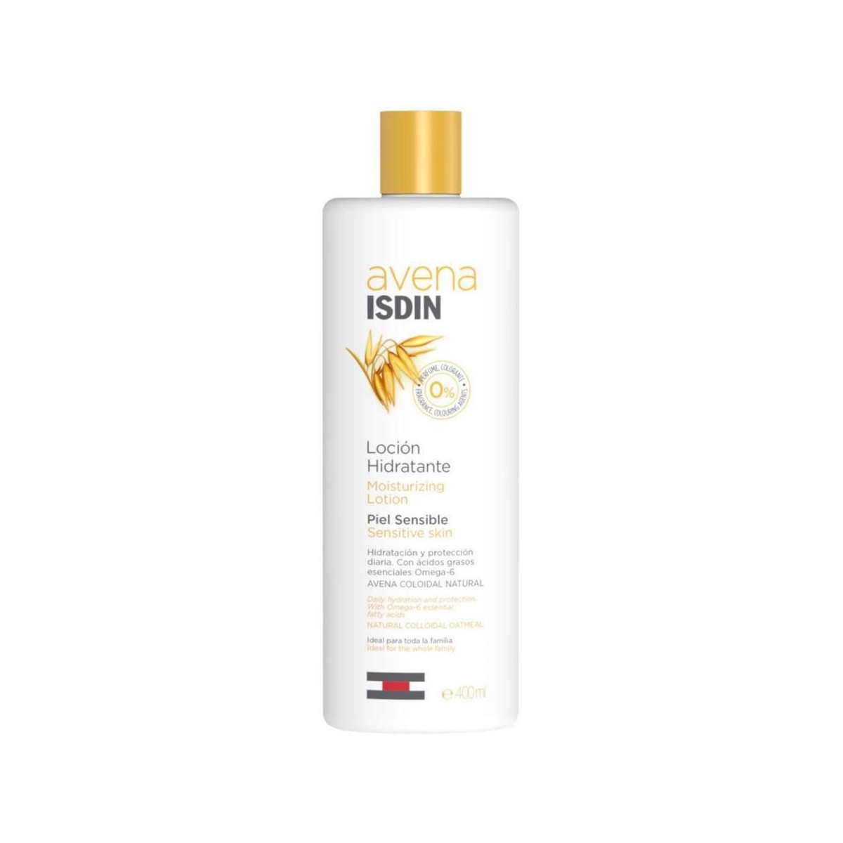 Isdin Avena Loción Hidratante 400mlIsdin Avena Loción Hidratante asegura la protección e hidratación diaria de la piel sensible. Con ácidos grasos esenciales Omega 6. Avena coloidal natural. Es una loción hidratante para toda la familia. 0% perfume. 0% colorante.